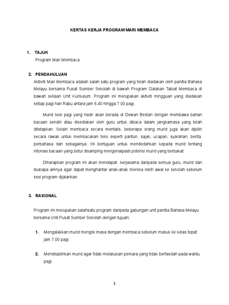 Contoh Kertas Kerja Pemulihan Bacaan
